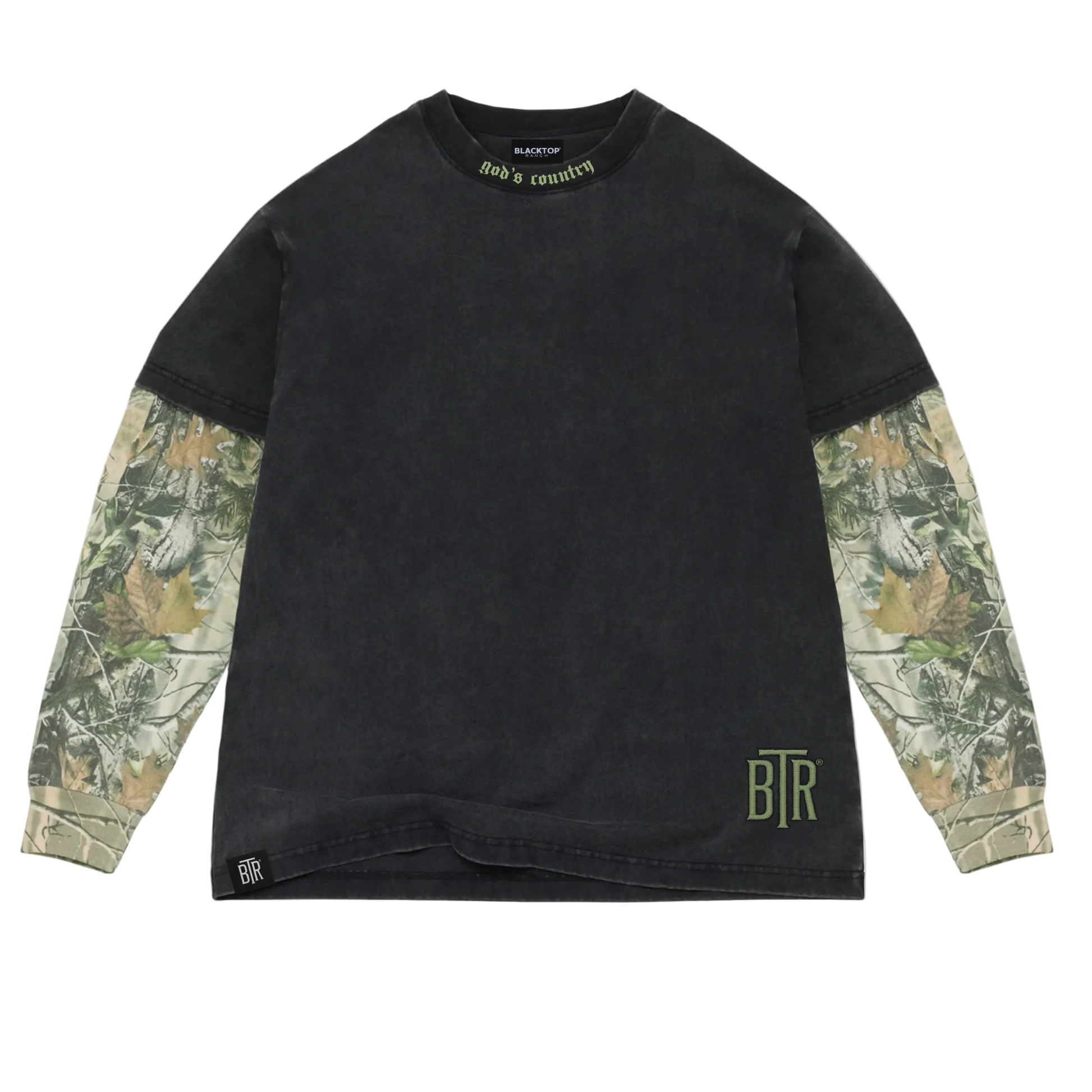 - 2-fer long sleeve design with camo sleeves
